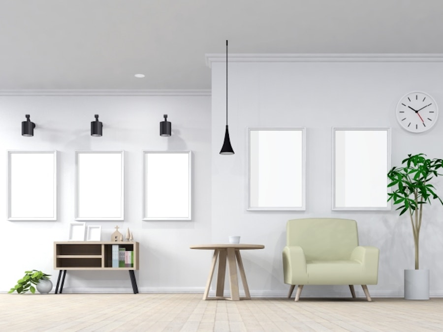 ミラー: 壁にデザイン性の高いミラーを飾ることで、空間に奥行きと広がりを与え、光を反射させる効果もあります。