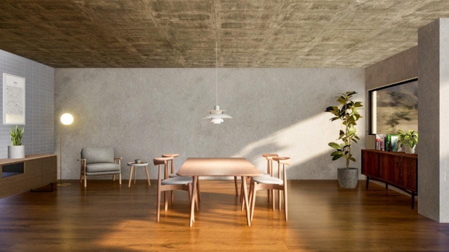 多灯分散照明: 一つのシーリングライトで部屋全体を照らすのではなく、ペンダントライト、フロアライト、テーブルライト、スポットライトなど、複数の照明を組み合わせ、必要な場所を必要な明るさで照らすことで、空間に陰影と奥行きを与えます。