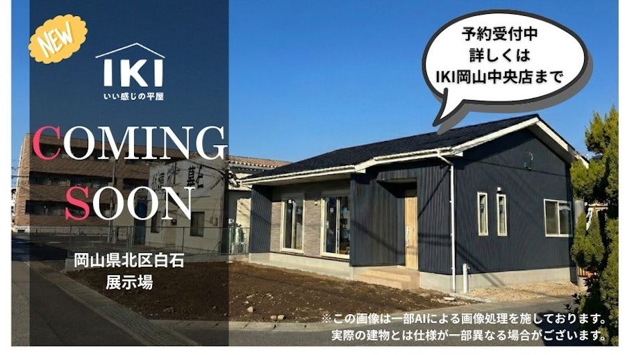 このたび、規格型平屋住宅「IKI」は、岡山県北区白石エリアに、新しいモデルハウスをグランドオープンいたします。