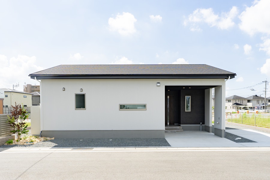 ~27坪の3LDKタイプのシンプルモダンな平屋が菊陽に誕生、リビングは勾配天井で化粧梁がおしゃれ~