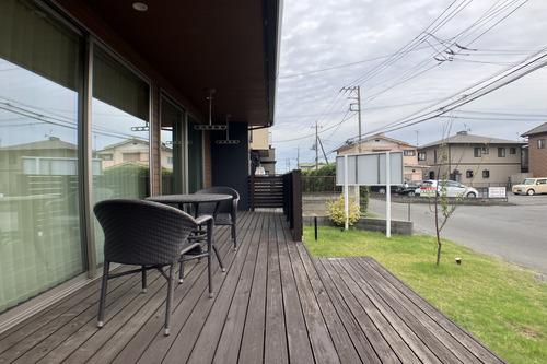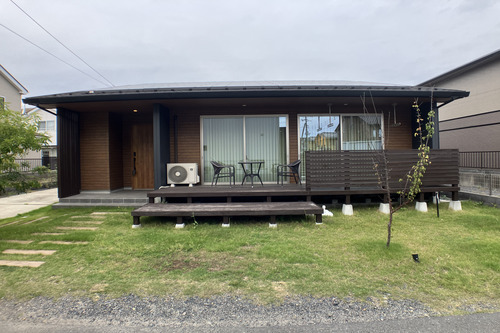 軒が深くガーデンチェアとテーブルを置くだけで森の中のカフェのような空間になります。IKIが人気なのは、これをローコストで実現してくれることです。